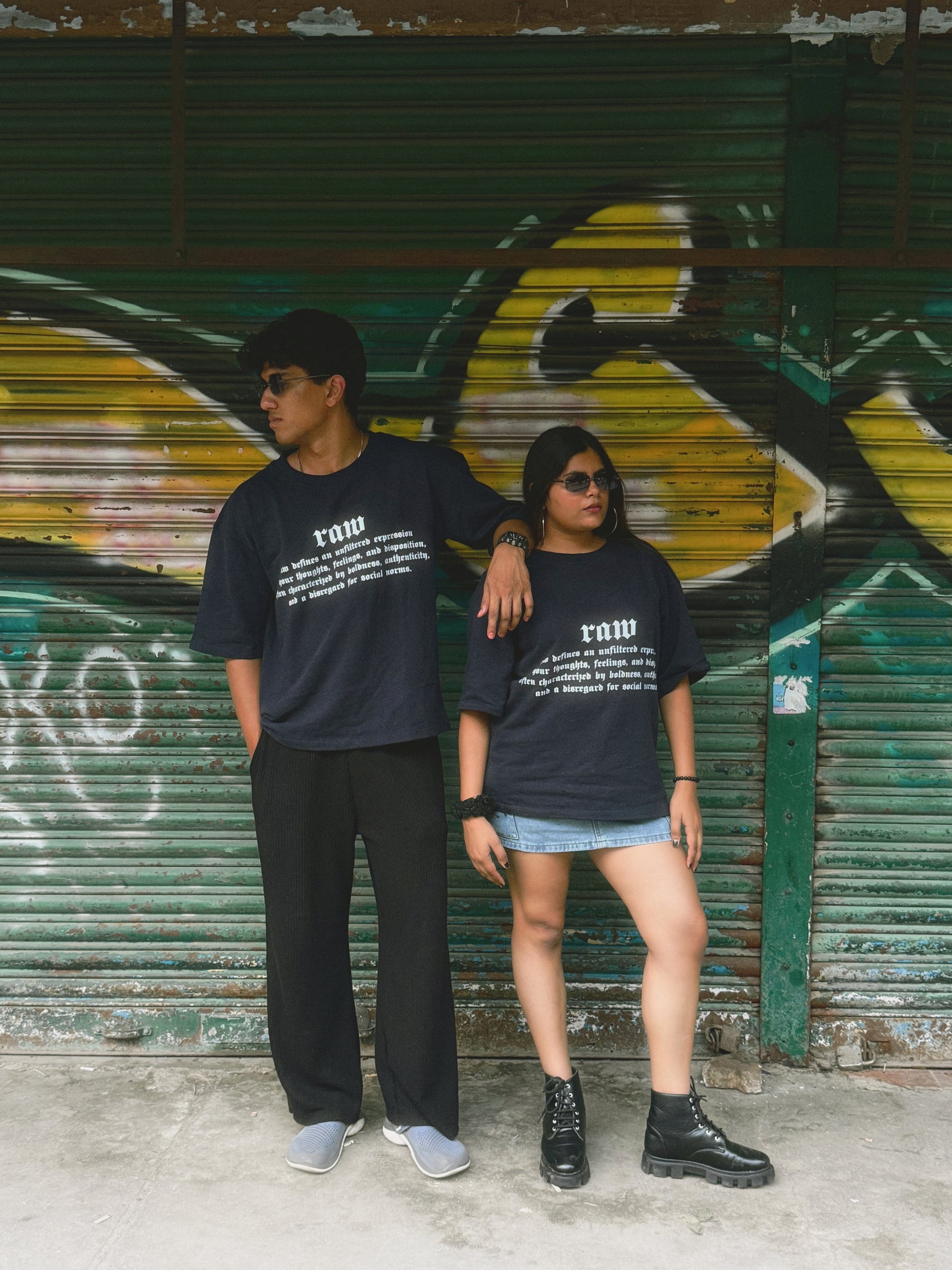 Product features the RAW APPAREL'S STATEMENT print on the front.